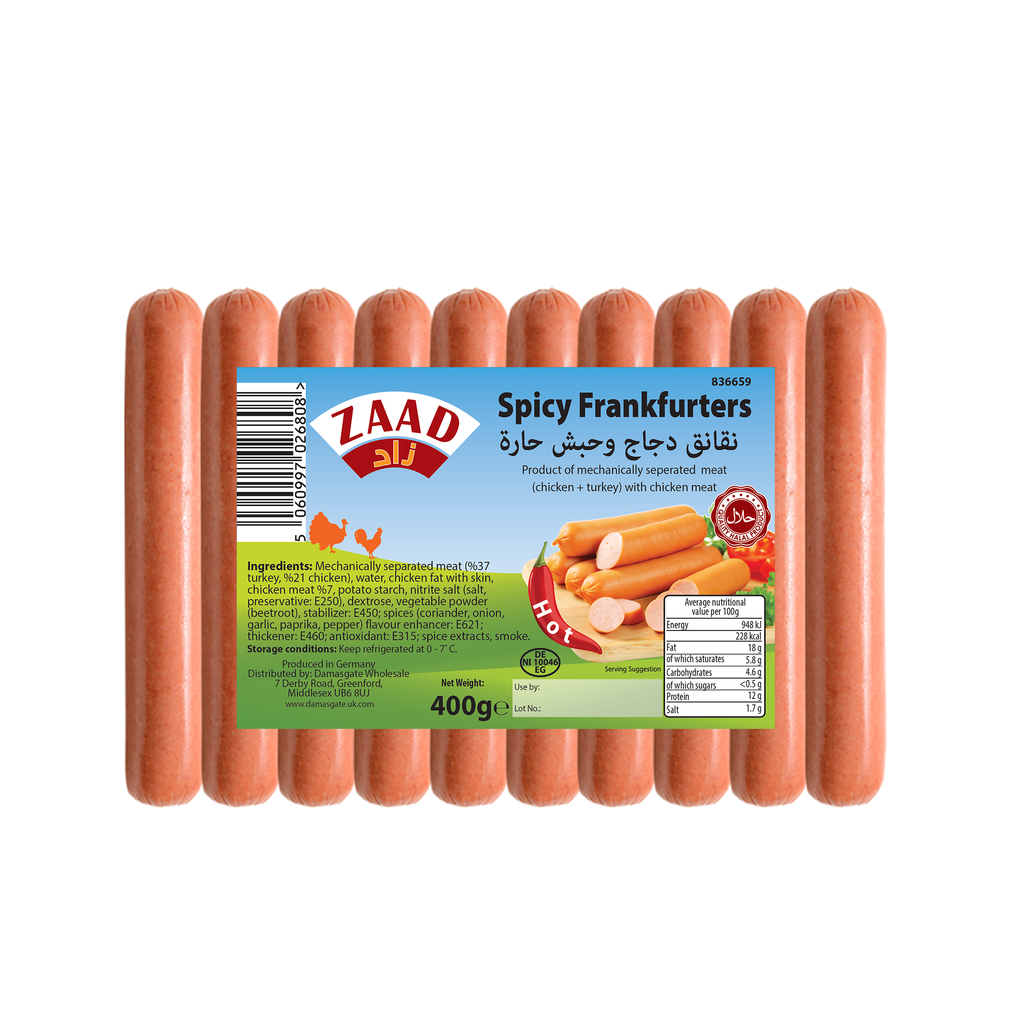 Zaad Spicy Chicken Hotdog 12X330g
